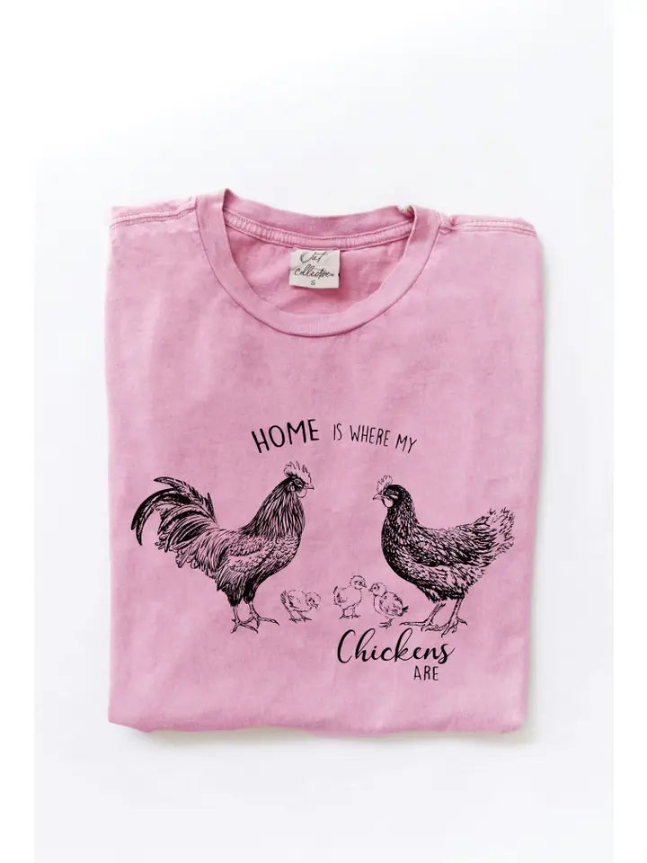 Home Is Where My Chickens Are Mineral Washed Graphic Top