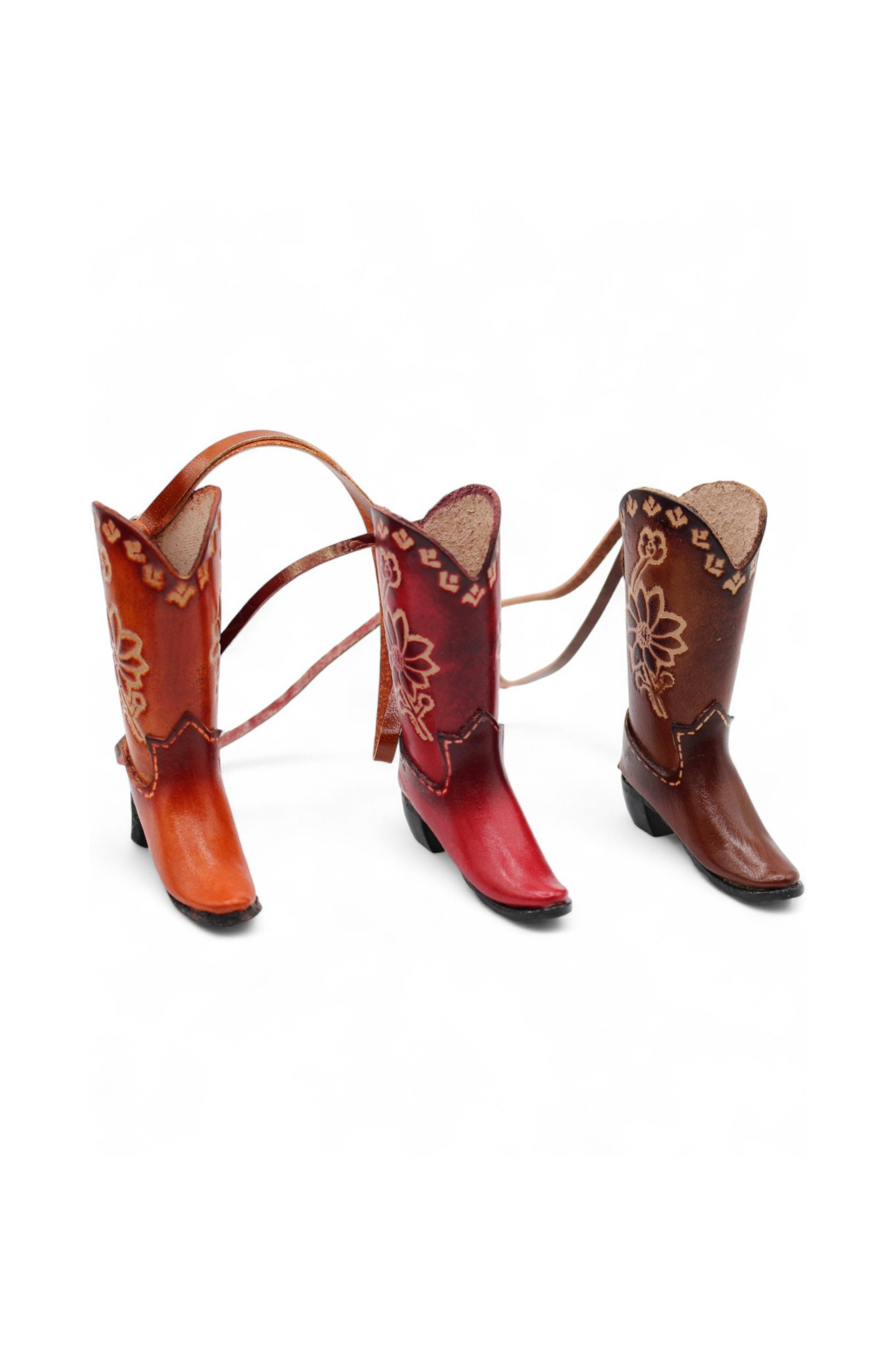 Decorate your tree in a fun western motif with this genuine leather cowboy boot ornament. Quality sturdy leather with amazing detailing.
