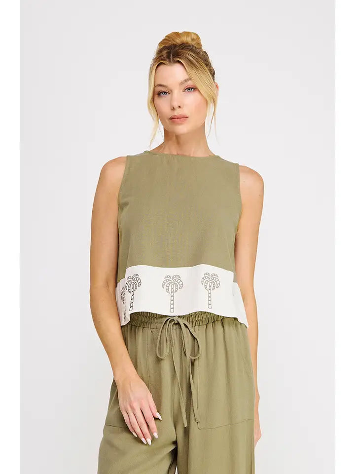 Soft Linen Tank With Contrast + Embroidered Hem