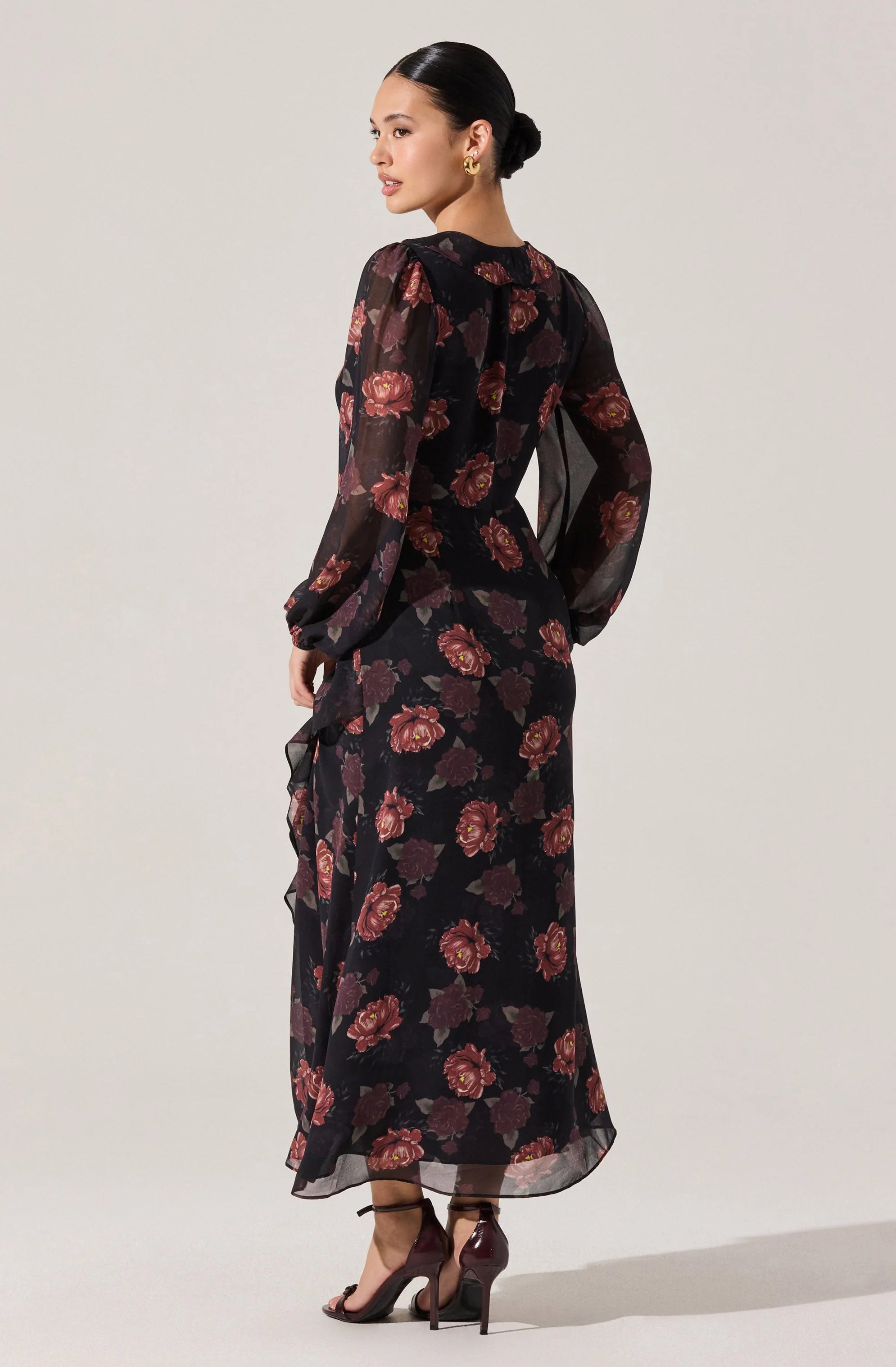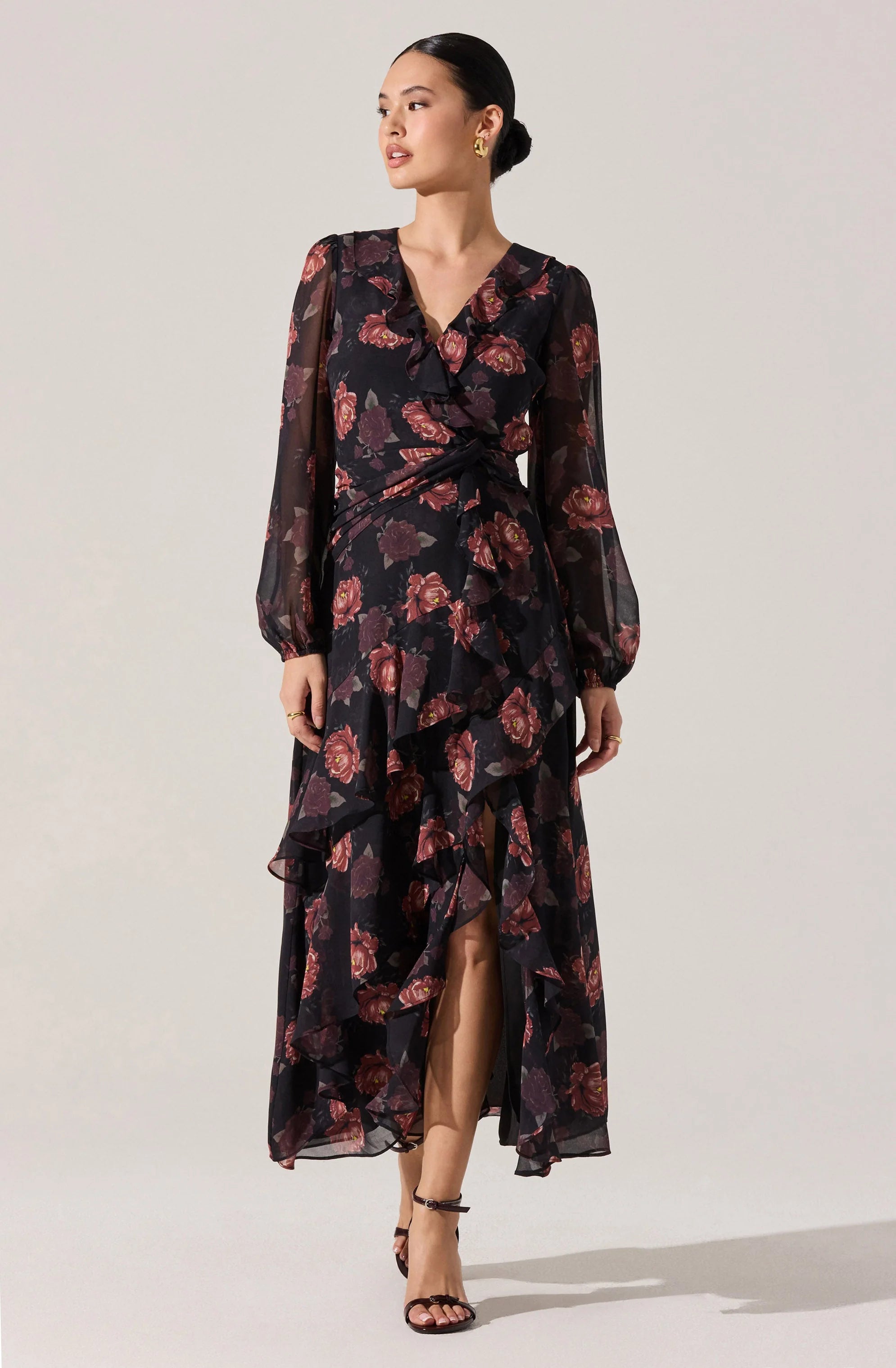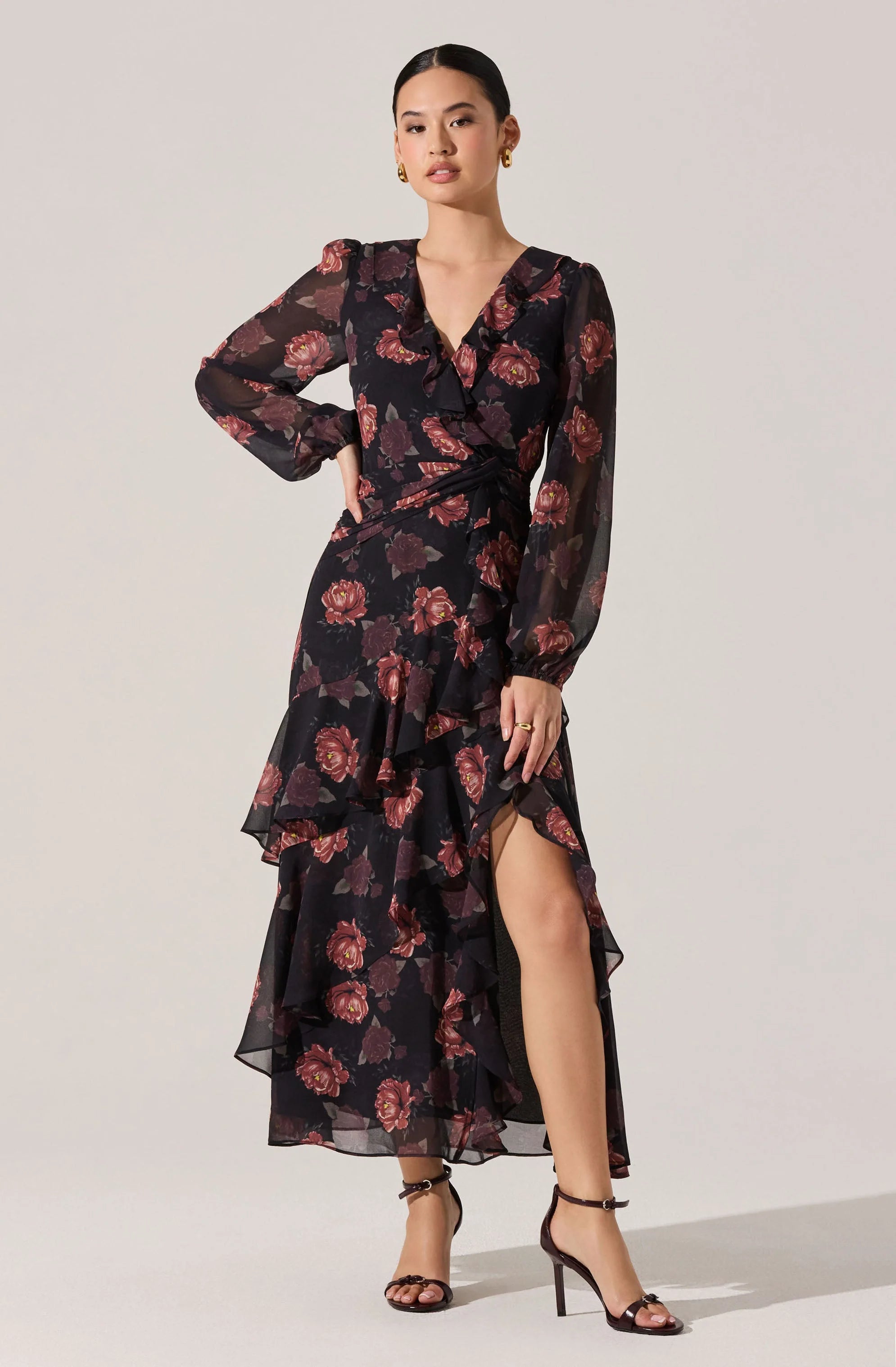 - Floral ruffle maxi dress